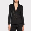 blazer légèrement oversize en crêpe stretch. col à revers, épaules droites, manches longues et poches plaquées à rabat sur les côtés. doublé. fermeture à double boutonnage en métal.