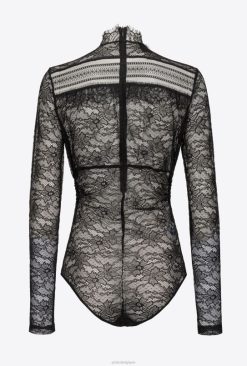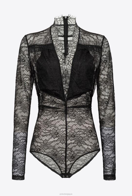 body en dentelle stretch à motif floral, col en V, col montant dans le dos, manches longues et doublure devant pour compenser l’effet transparent de la dentelle. fermeture zippée au milieu au dos.