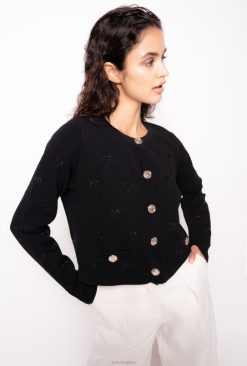 Cardigan court et ajusté en tissu jacquard piqué, avec logo Love Birds brodé partout. col rond, manches longues et petites poches avec bouton sur les côtés. fermé par des boutons bijoux sur le devant.