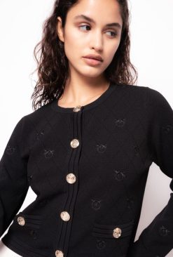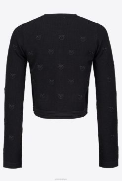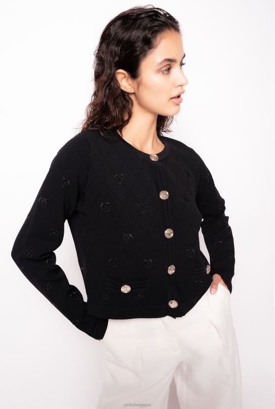 Pinko cardigan court en jacquard tourtereaux B244D554 gilet | limousine noire