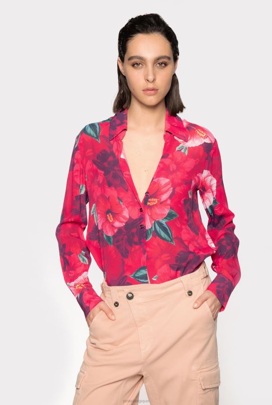 Pinko chemise à imprimé hibiscus B244D282 chemises | multi. fuchsia/rose