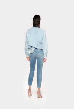 chemise courte en jean légèrement délavé avec broderie métallique de style western autour du bord de l’empiècement à l’arrière. col pointu, petites poches poitrine à rabat, manches longues et taille cintrée. fermeture par boutons-pression sur le devant.