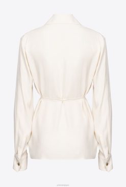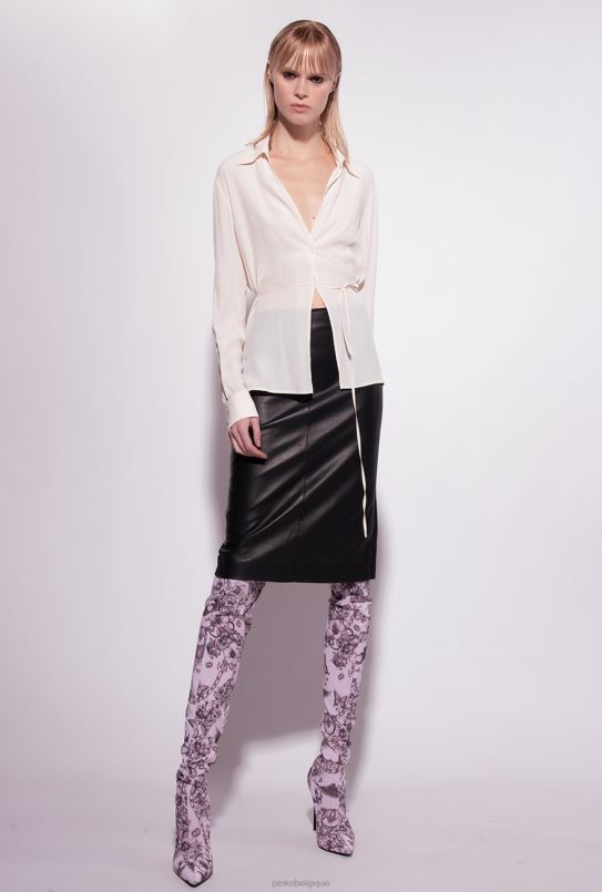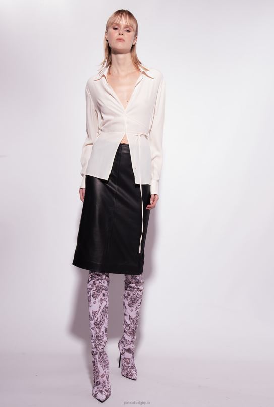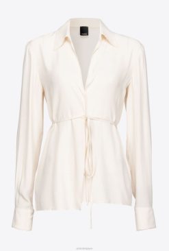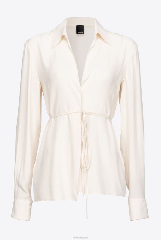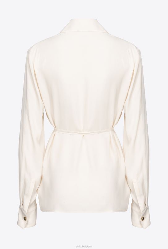 Pinko chemise en soie mélangée avec cravate B244D249 chemises | rose fumée blanche
