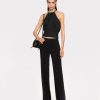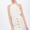 crop top sans manches en crêpe fluide. col rond avec pinces et bouton au dos, cache-coeur devant et longue découpe milieu dos. Fermeture zippée centrale en métal à l’arrière de l’ourlet. – le mannequin mesure 175 cm et porte une taille 40.
