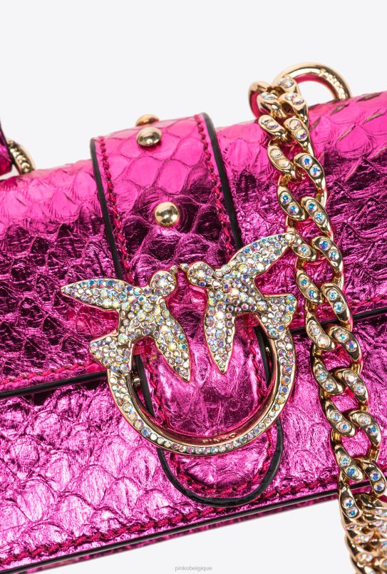 Pinko galerie laminé reptile micro love bag one B244D1235 sacs microlove | or fuchsia brillant