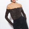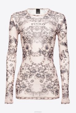 haut à manches longues en tulle stretch avec imprimé tatouage. pièce ajustée à col rond.