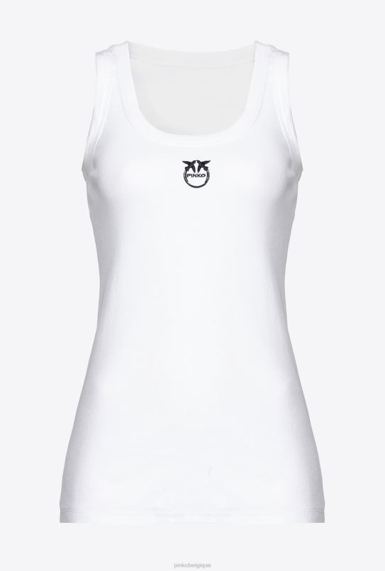 Débardeur sans manches en jersey de coton stretch avec col nageur et logo tourtereaux brodé sur le devant.