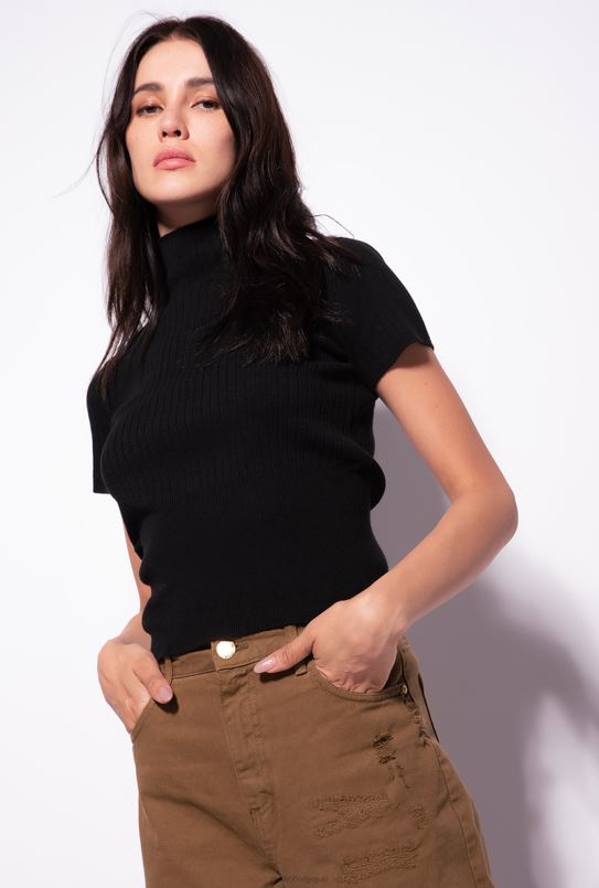 Pinko haut côtelé à manches courtes B244D484 haut | limousine noire