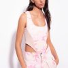 haut de lingerie sans manches en satin de soie extensible. bretelles fines réglables et col en V bordé de dentelle, avec cordon à nouer selon vos envies et embouts en métal. – le mannequin mesure 175 cm et porte une taille 40.