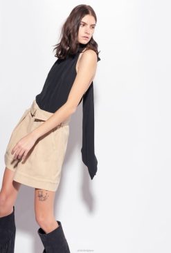 haut ample sans manches en tissu georgette de viscose. Col dos nu avec col montant et ceinture que vous pouvez nouer en nœud ou laisser tomber sur le dos. – le mannequin mesure 176 cm et porte une taille 40.