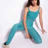 haut ajusté sans manches en tissu georgette extensible, avec imprimé monogramme Love Birds partout. fines bretelles et bande élastique siglée en bas.