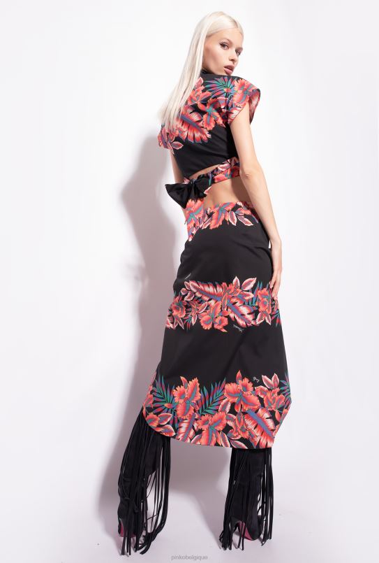 Pinko robe en popeline à imprimé tropical B244D106 robes mi-longues | multi. noir rouge