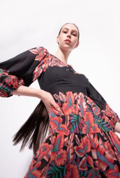 Pinko robe en popeline à imprimé tropical B244D106 robes mi-longues | multi. noir rouge