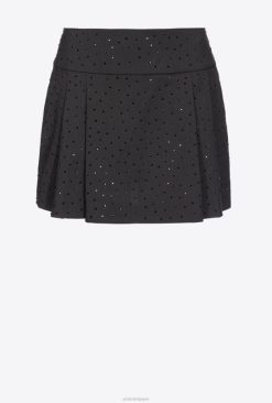 mini-jupe plissée en tissu technique en laine technique légèrement extensible, ornée d’applications de strass transférés à chaud parsemées sur tout le devant et le dos du vêtement. les strass de couleur assortie ont été régulièrement positionnés sur le motif pour créer un effet de luxe spécial. fermeture zippée dissimulée et deux boutons sur le devant. le vêtement fait partie de la collection capsule spéciale en édition limitée qui comprend des modèles en édition limitée exclusifs à Pinko Galleria.