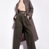 pantalon large en popeline de coton. taille haute avec revers, plis et jambes très amples avec poches latérales dans les coutures. fermeture zippée.