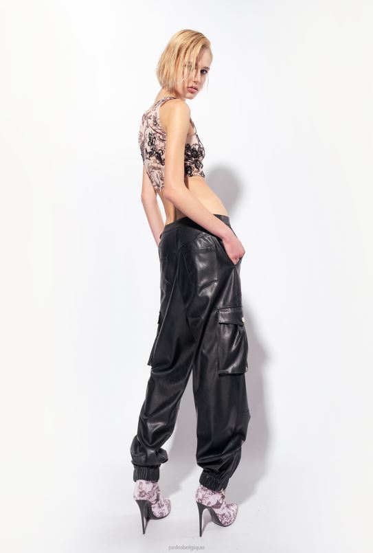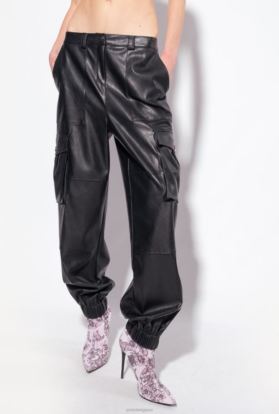 Pinko pantalon cargo en similicuir B244D639 pantalons décontractés | limousine noire