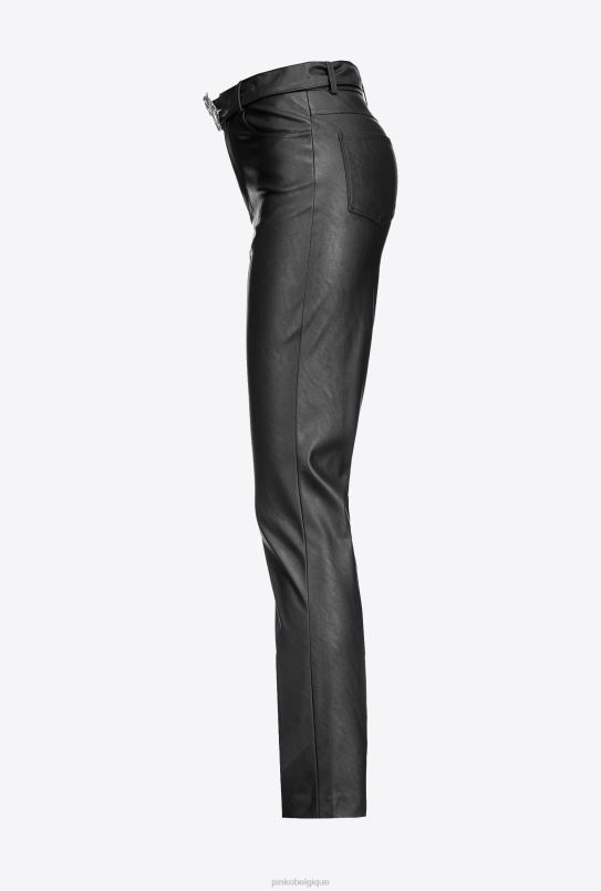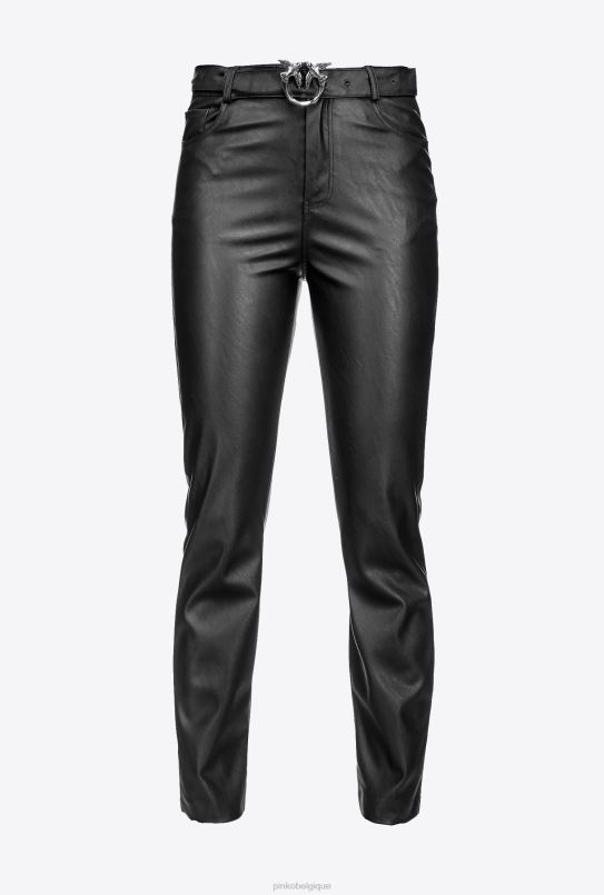 Pinko pantalon effet cuir avec ceinture love bird B244D710 pantalons décontractés | limousine noire