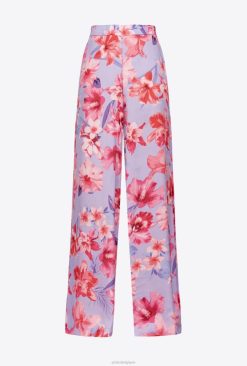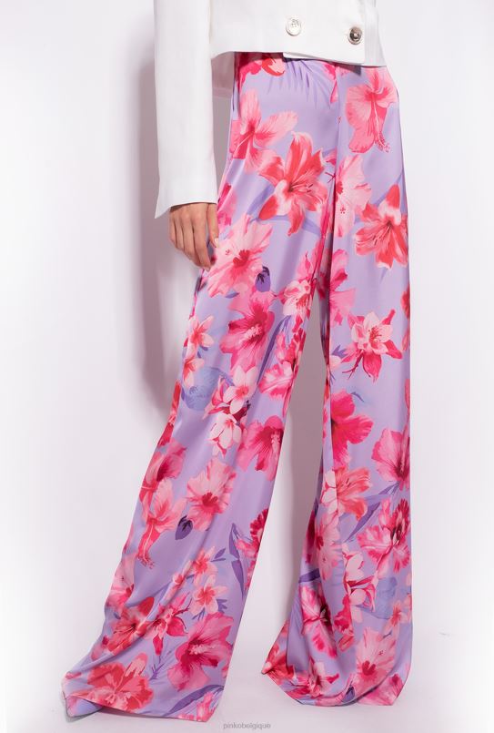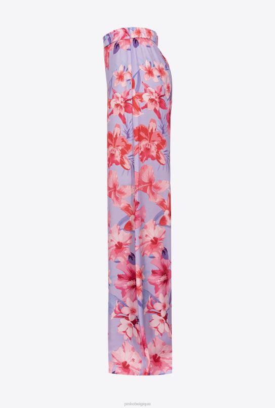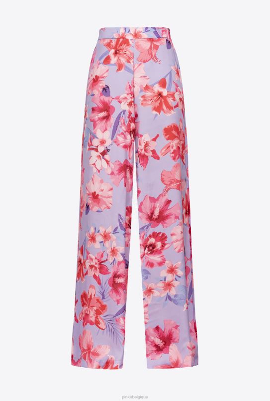 Pinko pantalon large à imprimé floral B244D650 pantalons décontractés | lilas/rose clair/fuchsia
