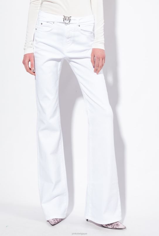 Pinko pantalon large évasé en taurillon de coton B244D858 jeans | blanc brillant