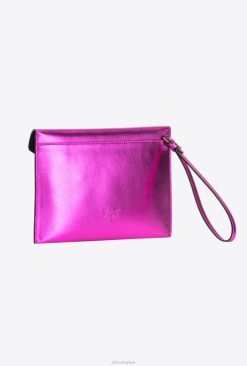 Pinko porte-cartes plat Galleria en peau de reptile laminée B244D1172 pochettes | or fuchsia brillant