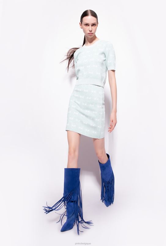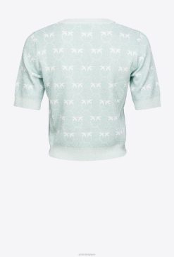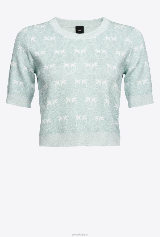 Pinko pull court à monogramme en lurex B244D450 pulls | aigue-marine/blanc