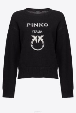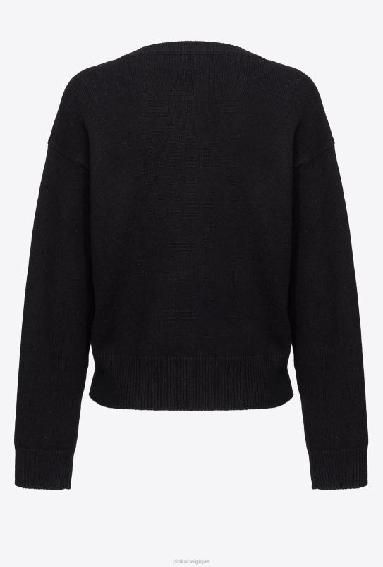 pull à manches longues en fil 100% pure laine, avec incrustation du logo pinko et détail tourtereaux au milieu. ourlet, poignets et col rond côtelés.
