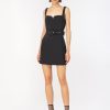 robe courte sans manches en crêpe technique stretch. bretelles, un décolleté en cœur et une ceinture assortie dans le même tissu avec boucle ton sur ton, une taille haute et une jupe légèrement évasée avec poches insérées sur le devant. doublé. Fermeture zippée centrale dissimulée au dos. – le mannequin mesure 175 cm et porte une taille 40.