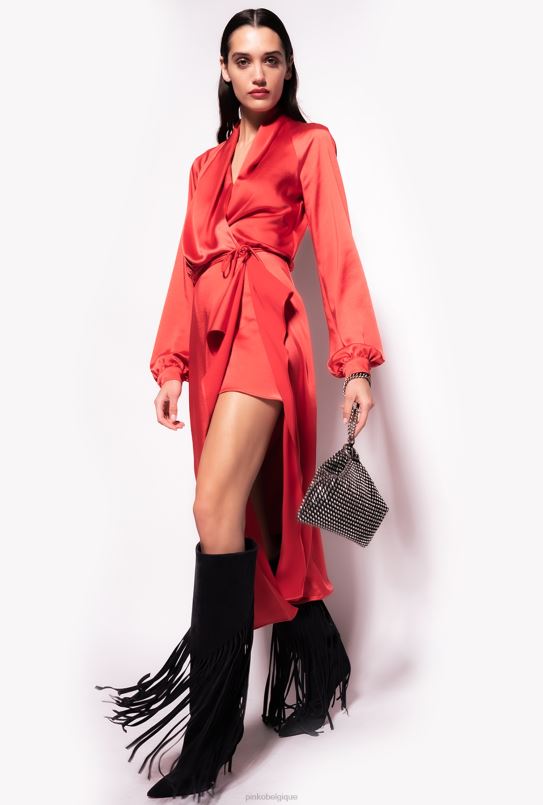 Pinko robe portefeuille en satin B244D101 robes mi-longues | formule 1 rouge
