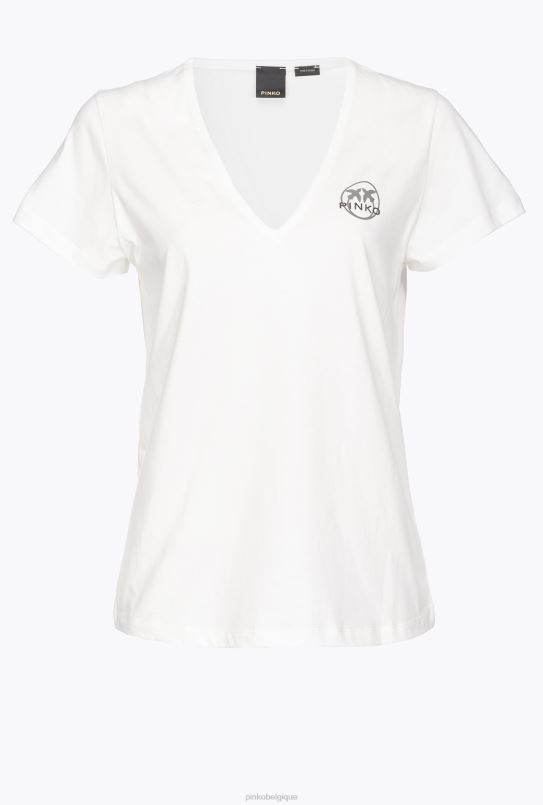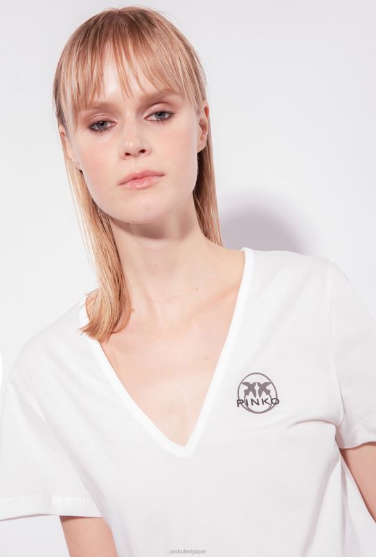 Pinko t-shirt à col en V avec logo B244D399 tee-shirt | soie blanche