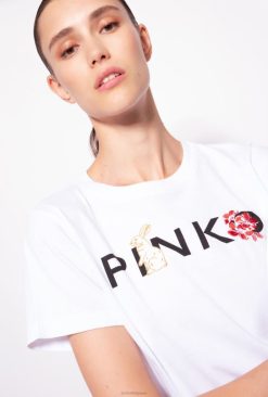 Pinko t-shirt avec broderie oiseaux d’amour B244D352 tee-shirt | nuage blanc