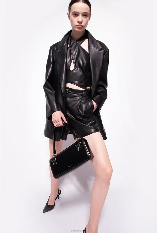 Pinko top court en similicuir B244D435 haut | limousine noire