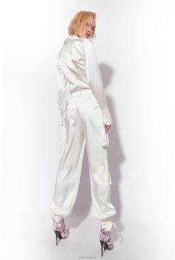 Pinko pantalon cargo en satin B244D764 pantalons décontractés | Blanc comme neige