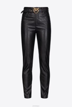 Pinko pantalon effet cuir avec ceinture love bird B244D785 pantalons décontractés | limousine noire