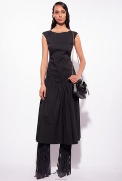 Pinko robe chemise en popeline de coton avec ceinture B244D39 robes mi-longues | limousine noire