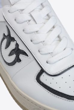 baskets plates en cuir agrémentées d’empiècements contrastés. personnalisé avec le logo Love Birds inscrit des deux côtés et le logo Pinko sur le talon. Semelle cuvette en caoutchouc de 3 cm. semelle intérieure et doublure intérieure en cuir.