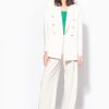 blazer coupe droite en tissu de laine mélangée avec revers en pointe en satin brillant ton sur ton. poche poitrine, poches latérales à double passepoil et manches longues avec boutons au bout. doublé. fermeture à double boutonnage avec boutons personnalisés avec le logo des tourtereaux. – le mannequin mesure 176 cm et porte une taille 40.