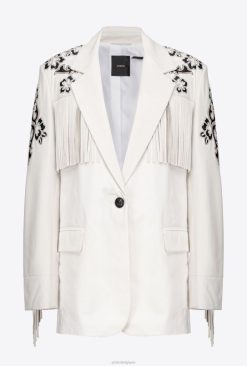 Pinko blazer en cuir avec broderie et franges B244D604 vestes décontractées | soie blanche