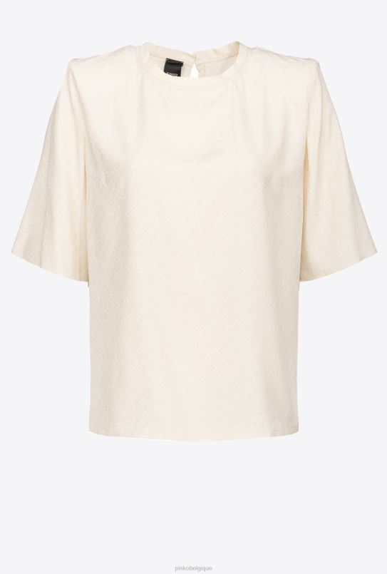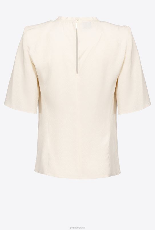 chemisier en crêpe de Chine de soie mélangée avec motif logo en jacquard. Modèle de coupe droite à col rond, manches courtes aux épaules structurées et fermeture goutte d’eau avec petit crochet milieu dos.