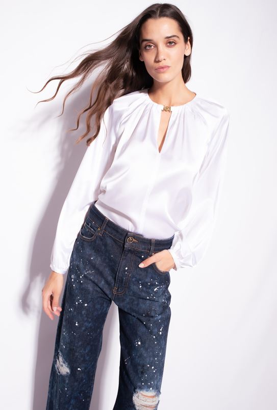 Pinko blouse à manches longues en satin stretch B244D303 chemisiers | blanc brillant
