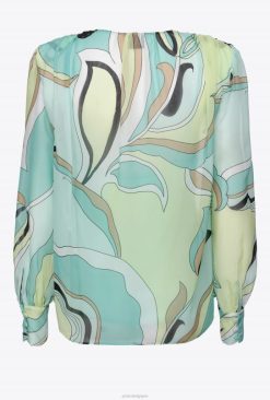 Pinko blouse en voile à imprimé boutons de fleurs B244D254 chemisiers | multicolore – vert d’eau/beige