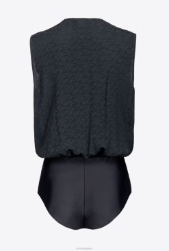 Pinko body ines 12 en crêpe de Chine avec logo jacquard B244D310 combinaisons et salopettes | limousine noire