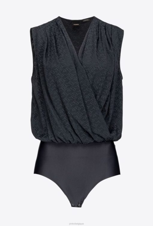 Pinko body ines 12 en crêpe de Chine avec logo jacquard B244D310 combinaisons et salopettes | limousine noire