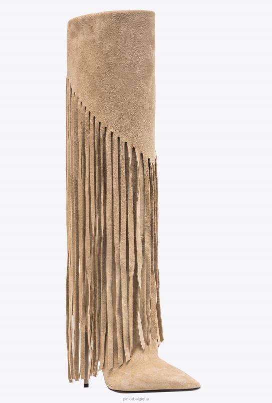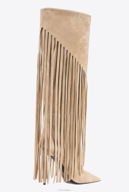 Pinko bottes en daim à franges B244D1100 bottes | beige-taupe clair