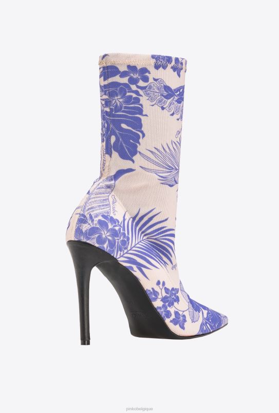 bottines en tissu à mailles extensibles à maille serrée, avec imprimé floral décoratif. bout effilé et semelle en cuir avec talon aiguille de 10 cm. semelle intérieure rembourrée.