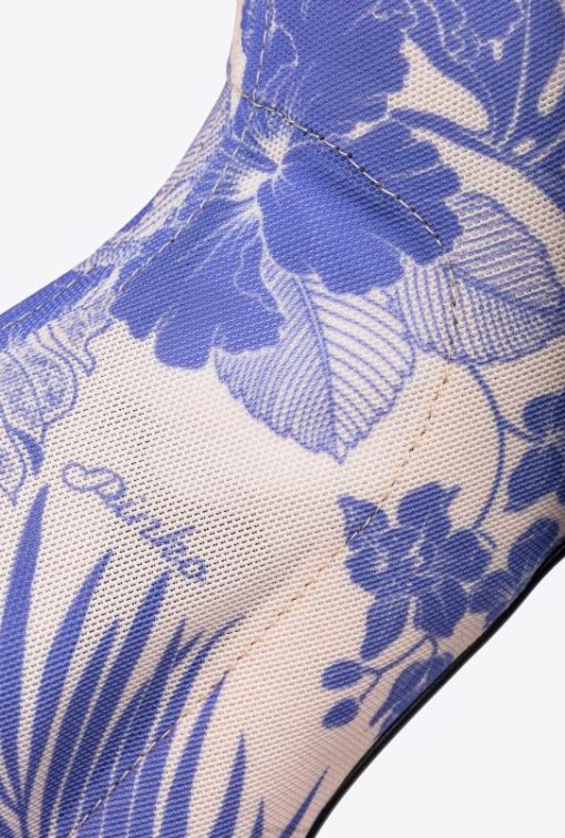 bottines en tissu à mailles extensibles à maille serrée, avec imprimé floral décoratif. bout effilé et semelle en cuir avec talon aiguille de 10 cm. semelle intérieure rembourrée.