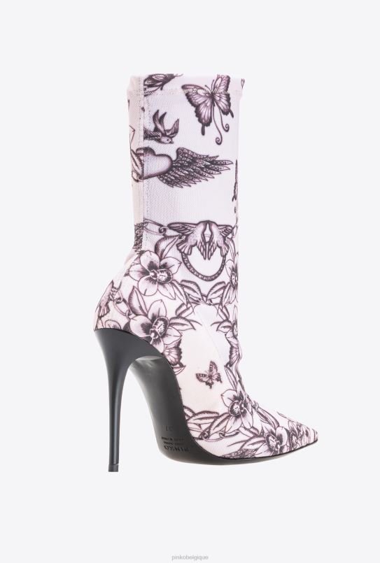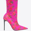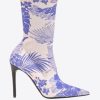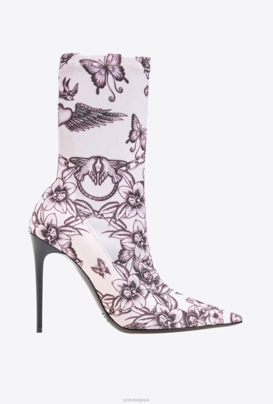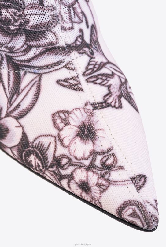 bottines en tissu à mailles extensibles à maille serrée, avec imprimé floral décoratif. bout effilé et semelle en cuir avec talon aiguille de 10 cm. semelle intérieure rembourrée.