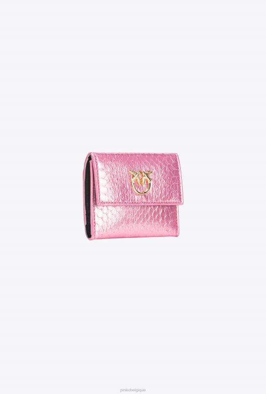 Pinko bourse compacte Galleria en peau de reptile laminée B244D1168 sacs à main | or rose poudré brillant