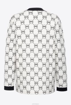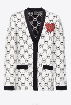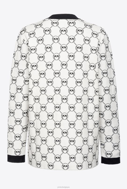 Pinko cardigan à jacquard monogrammé B244D541 gilet | multi. blanc/noir/rouge