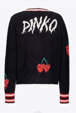 Pinko cardigan avec incrustation de cerises B244D533 gilet | multi. noir rouge