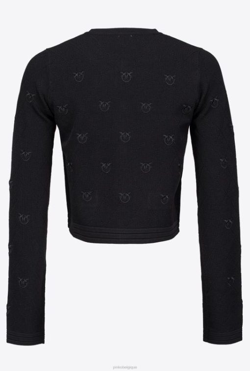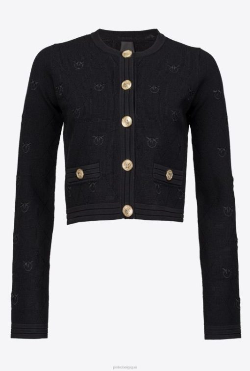 Pinko cardigan court en jacquard tourtereaux B244D554 gilet | limousine noire